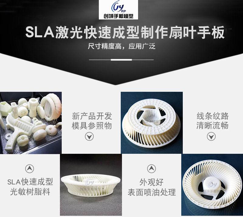 扇葉手板主要由SLA激光快速成型制作完成,材質:光敏樹脂料。